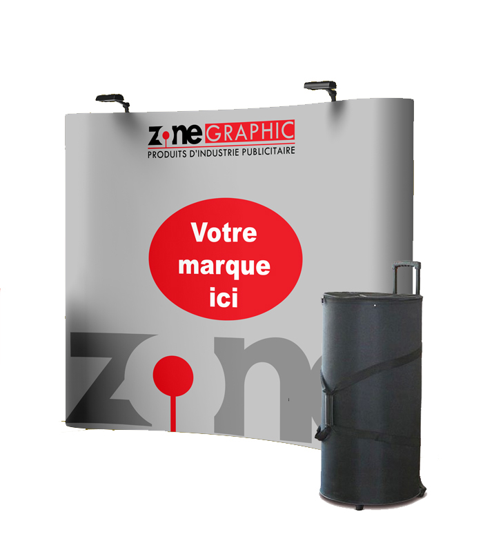 Pour vos besoins en matière de démonstration, présence dans des salons ou des halls d’exposition, dans des locaux d’accueil, pour créer un point de promotion lors d’une compagne de plv ou de publicité nous vous présentons le stand parapluie droit 3*3.Ce stand portable est facilement montable,propose une grande surface d’exposition qui mettra en valeur vos visuels imprimés.